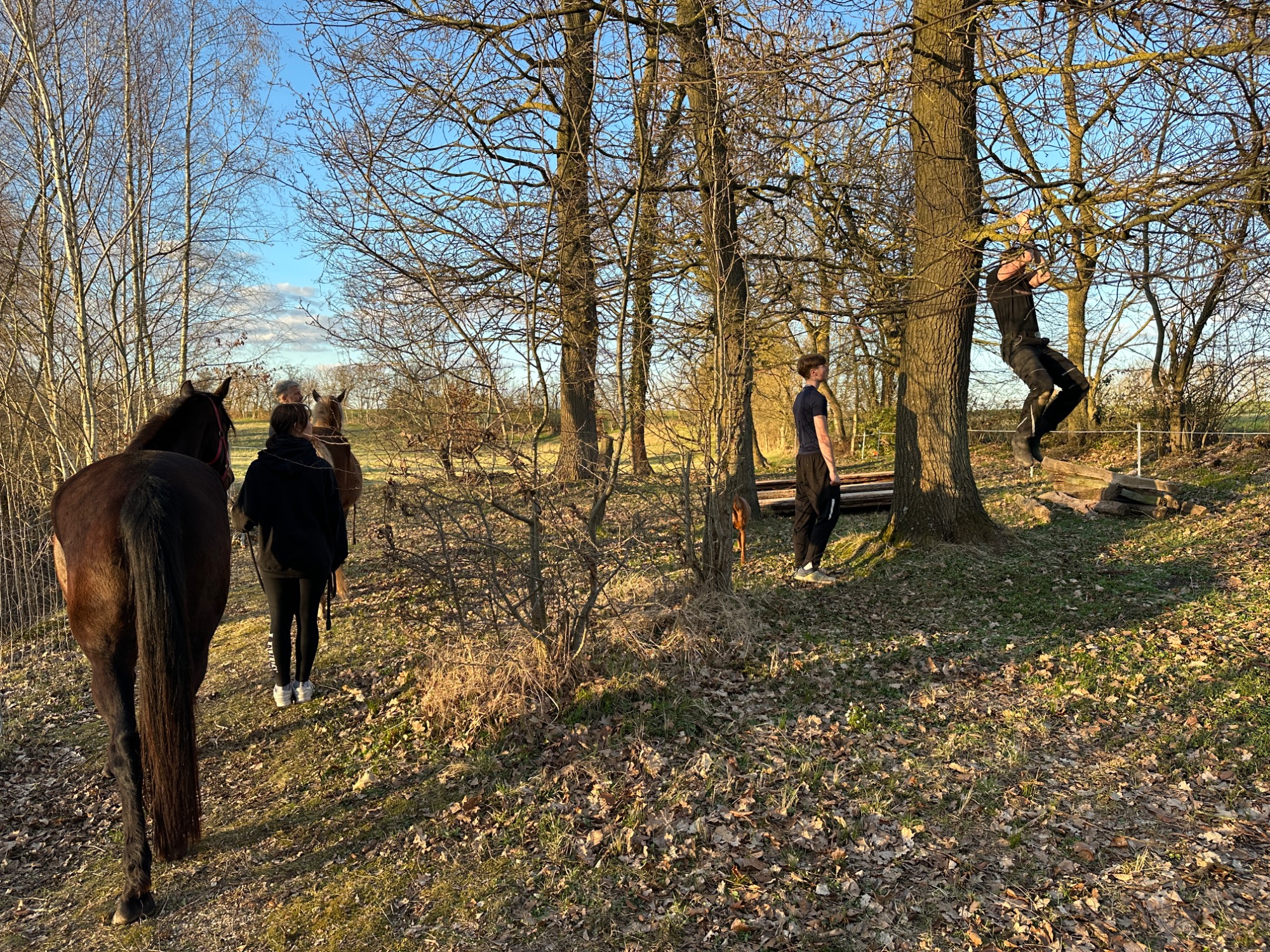 Seit knapp 2 Wochen sind unsere Morgan-Ladys nun auf BlackCourt und verfolgen natürlich alles, was wir so tun, mit größtem Interesse. Völlig unerschrocken werden auch die ersten Spaziergänge in die wundervolle Naturlandschaft der Mecklenburger Schweiz genossen, die ersten Einheiten auf dem Naturreitplatz absolviert und die große Sommerweide für kräftige Laufeinheiten an der langen Longe verwendet. So lebt es sich ein gutes Pferdeleben... auch dann, wenn mal wieder ein Baum für neues Holz am Hof gesorgt hat, kaum war der Pferdewald fertig. Aber Säge und viel Manneskraft haben es gemeistert.