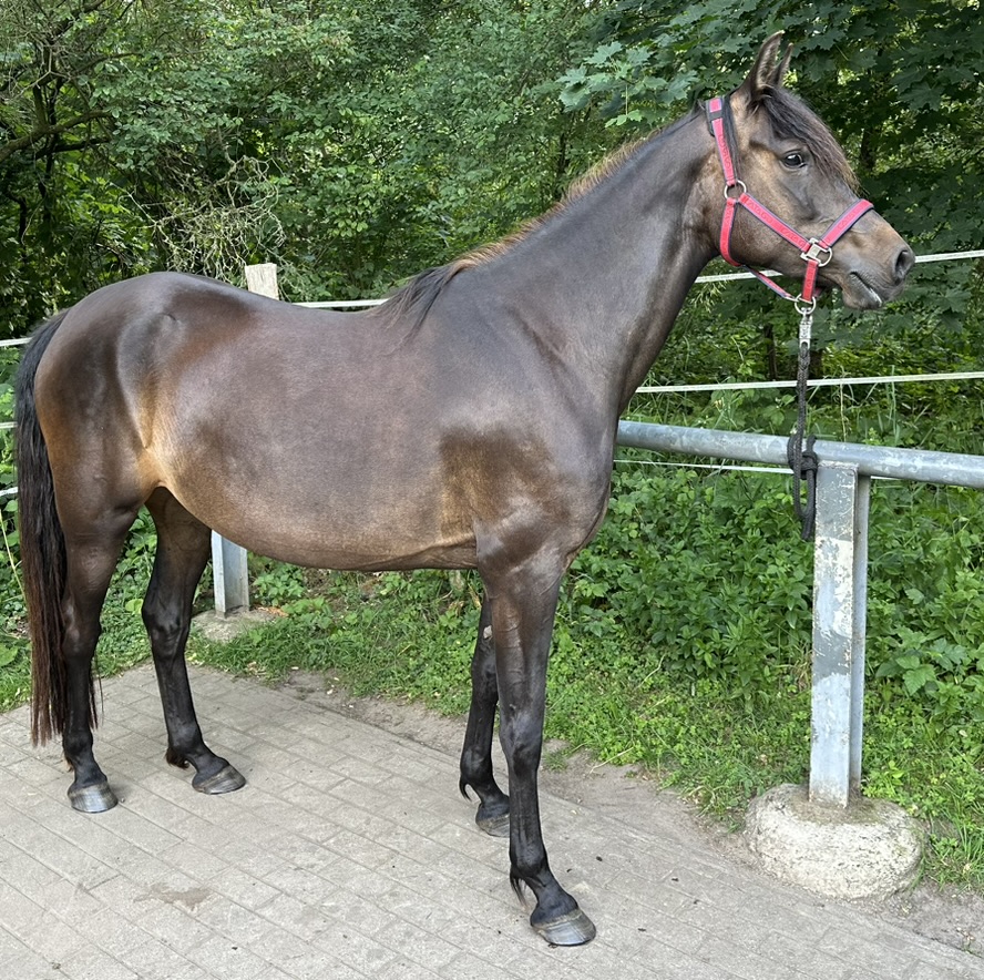Mit ihr fing alles an, im Sommer 2021. Kaum geboren und das erste Foto gesehen - sofort infiziert mit dem Morgan-Horse-Virus. Gekauft via Telefon, besucht, bestaunt und mit 7 Monaten als mutiger kleiner Absetzer nach Hause gebracht. Seit dem vergeht die Zeit wie im Flug und unsere Queeni wird zur Königin.