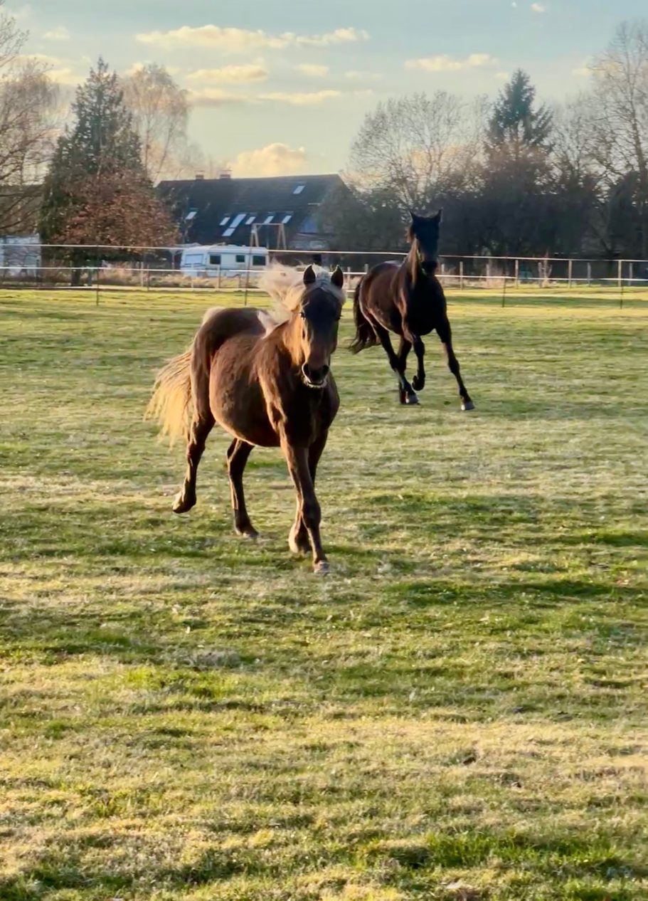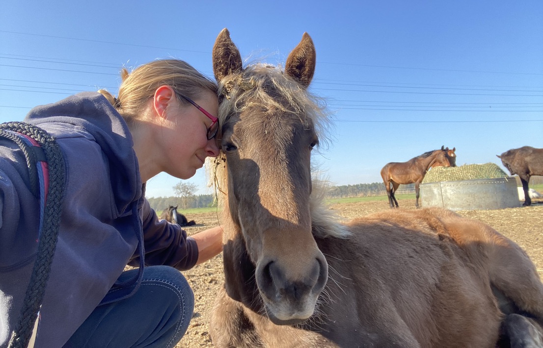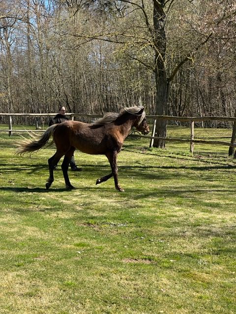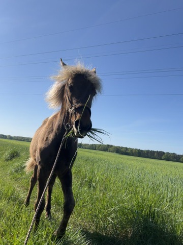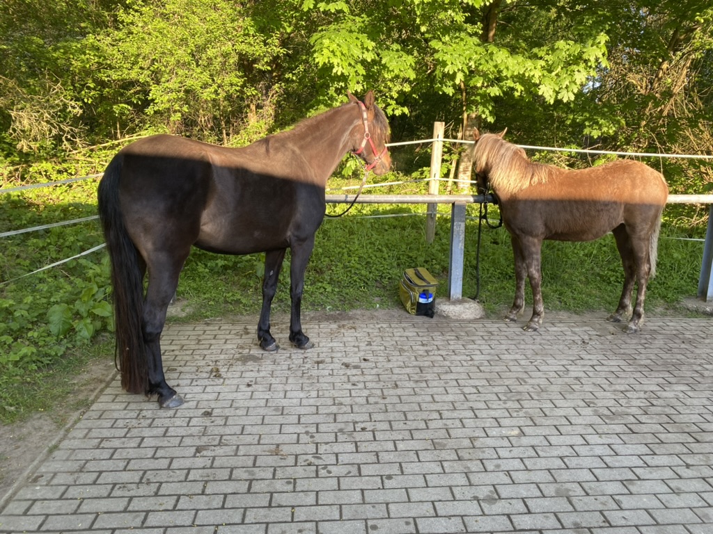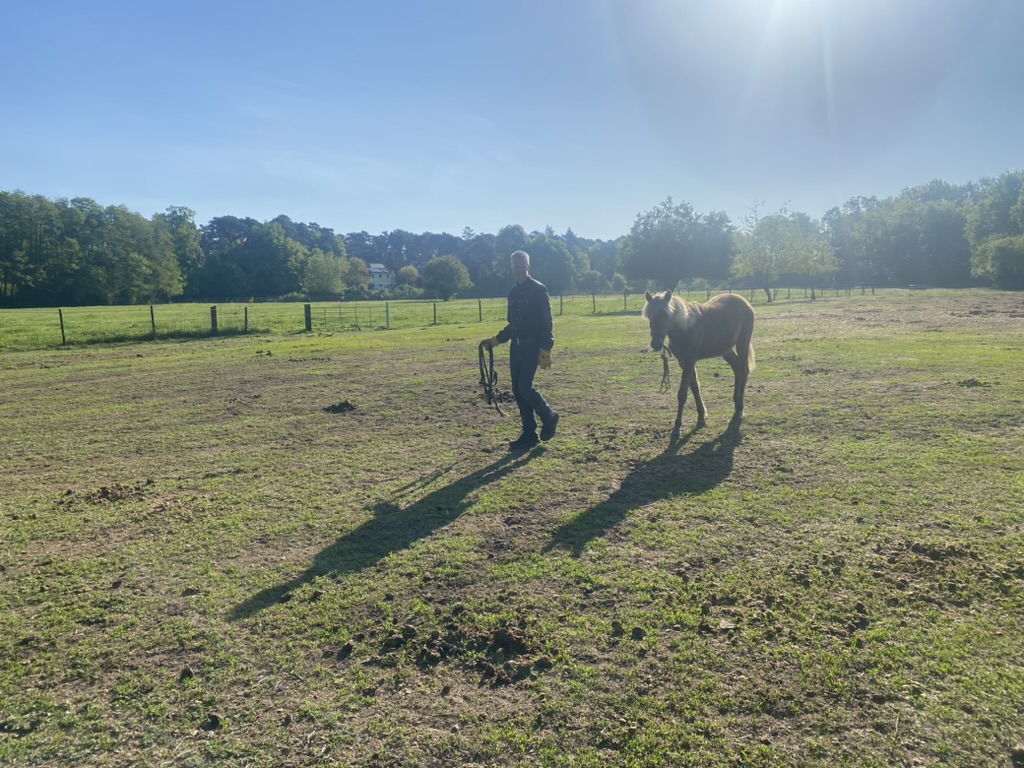 Übung macht den Meister, vor allem aber macht es Spaß. Junie entpuppt sich als kleine Musterschülerin, sowohl im Gelände, als auch auf dem Platz, beim Schmied und Tierarzt immer 1+.